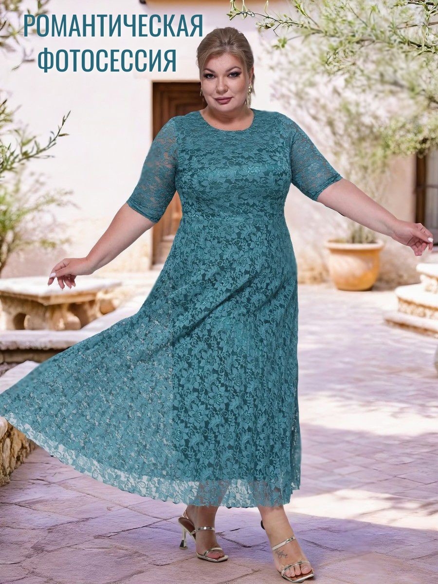 Платье кружевное макси для торжества/океанский бриз