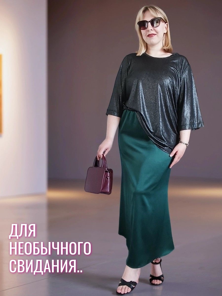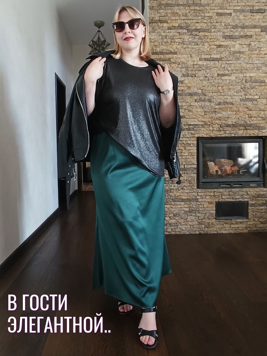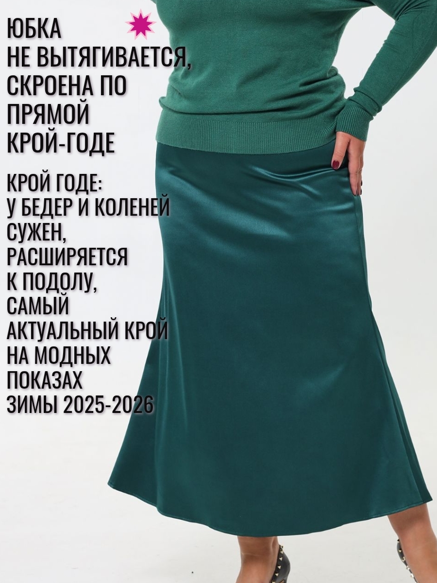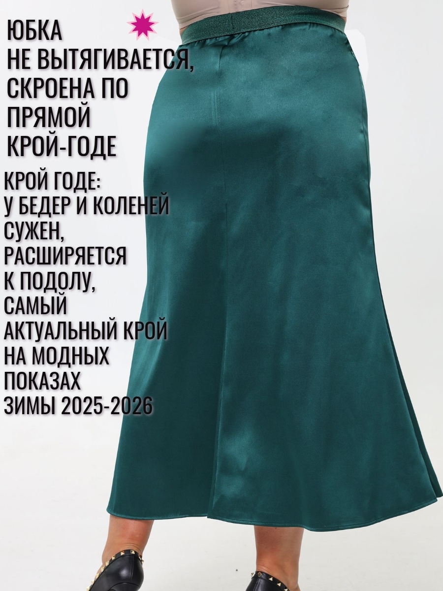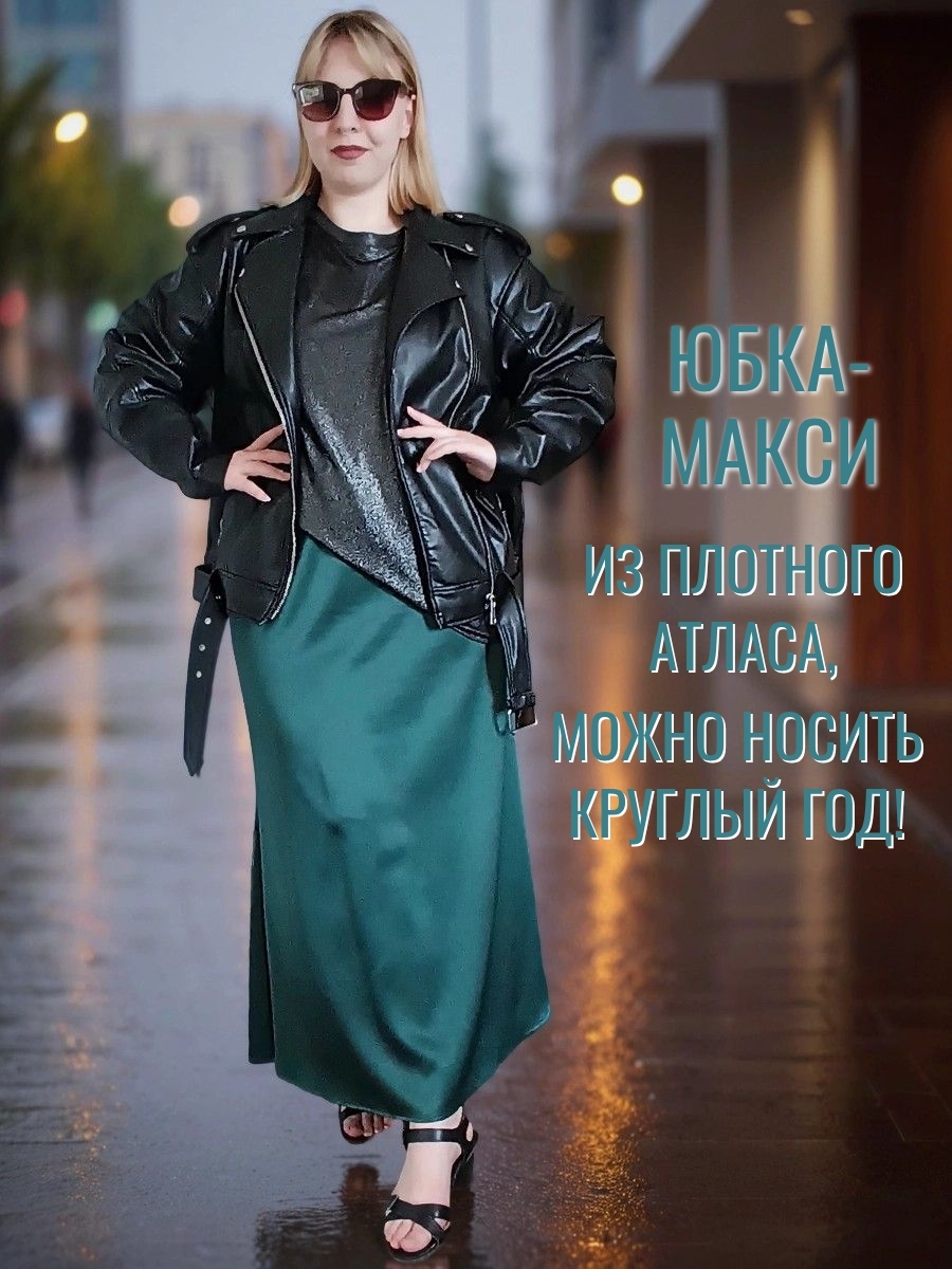 Юбка из плотного атласа в длине макси - один из главных трендов моды зимнего сезона 24-25. Благородный , матово-блестящий атлас (русский сатин) эффектно подчеркнет силуэт и комфортен в носке круглый год. Удобная резинка пояса (с люрексом, декоративная)и плотно обхватывает талию. Длина юбки 92 см, модель годе ( сверху суженная, снизу клеш). Если Вы хотите плотного облегания - берите размер в размер. Ориентируйтесь только на мерки обхвата бедер : 52размер-112см; 54р-116см; 56размер-120 см; 58-124см; 60-128 см; 62- 132см. Образы могут быть как вечерними, так и повседневными- шелковые юбки удачно сочетаются с трикотажными вещами.
