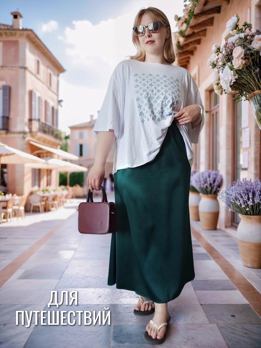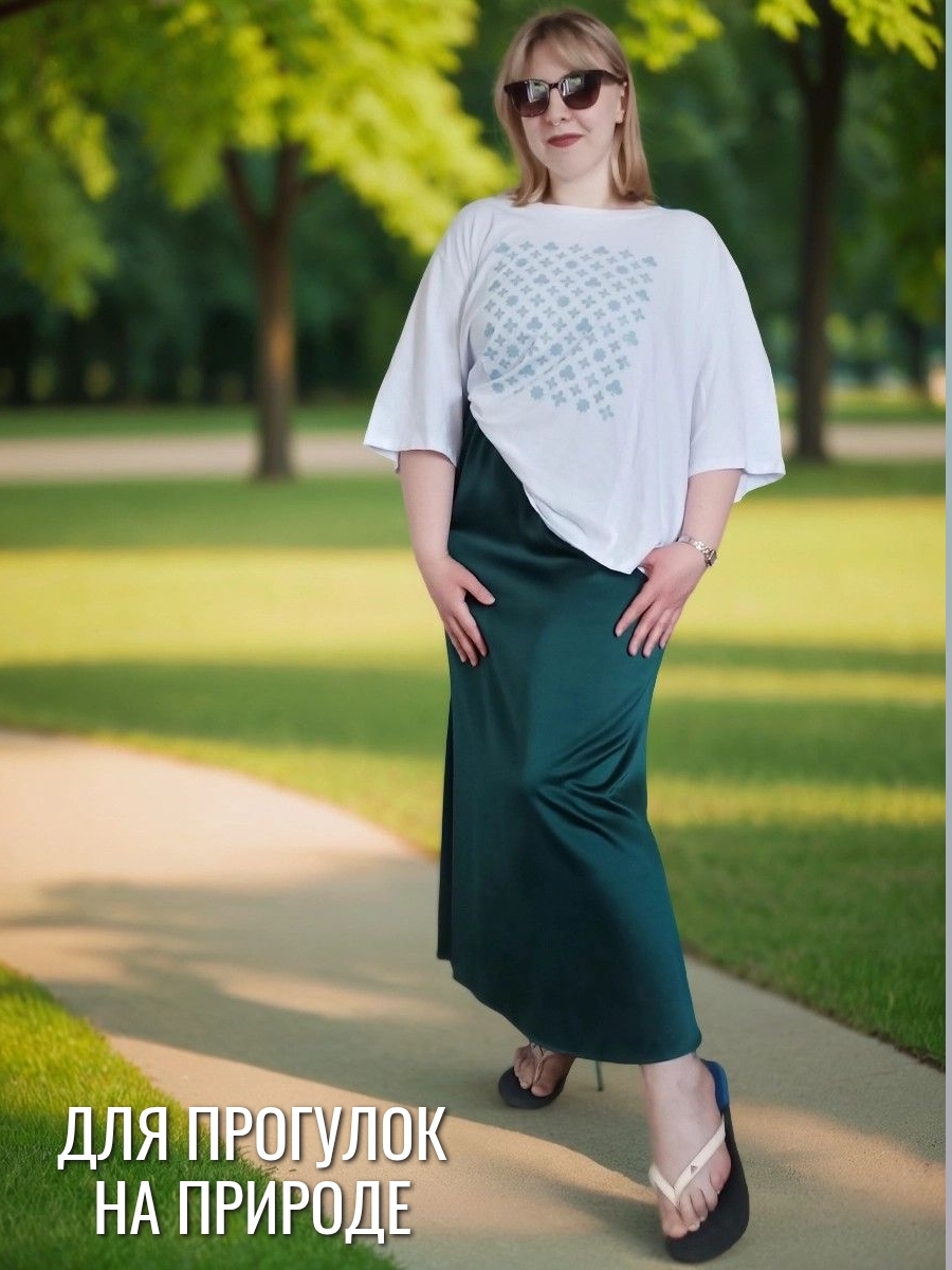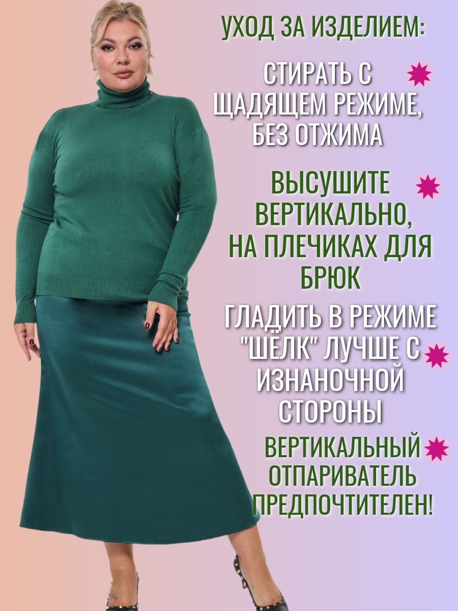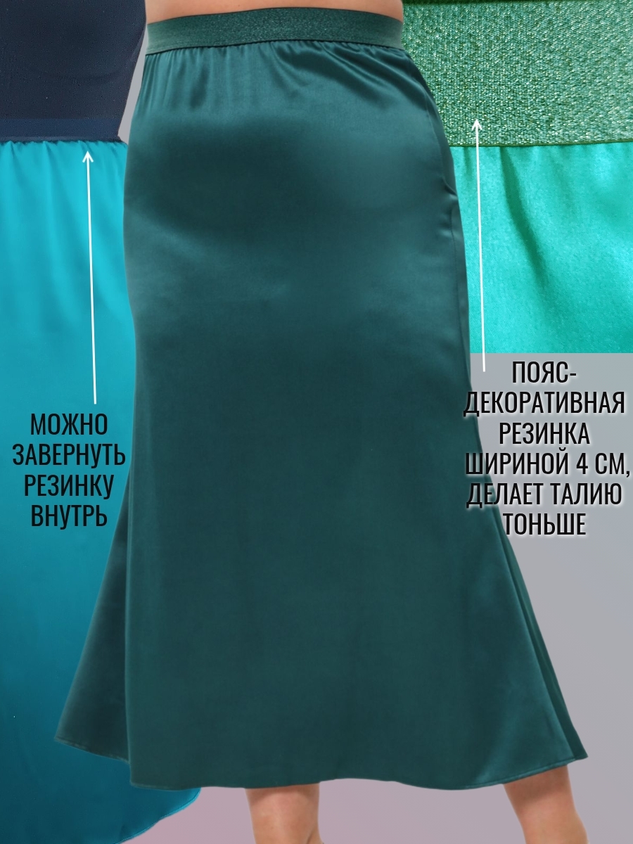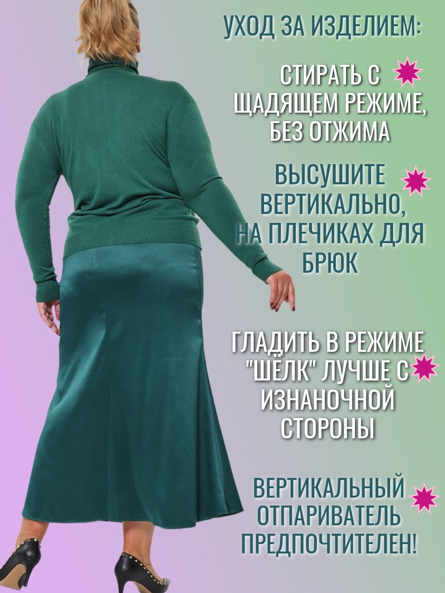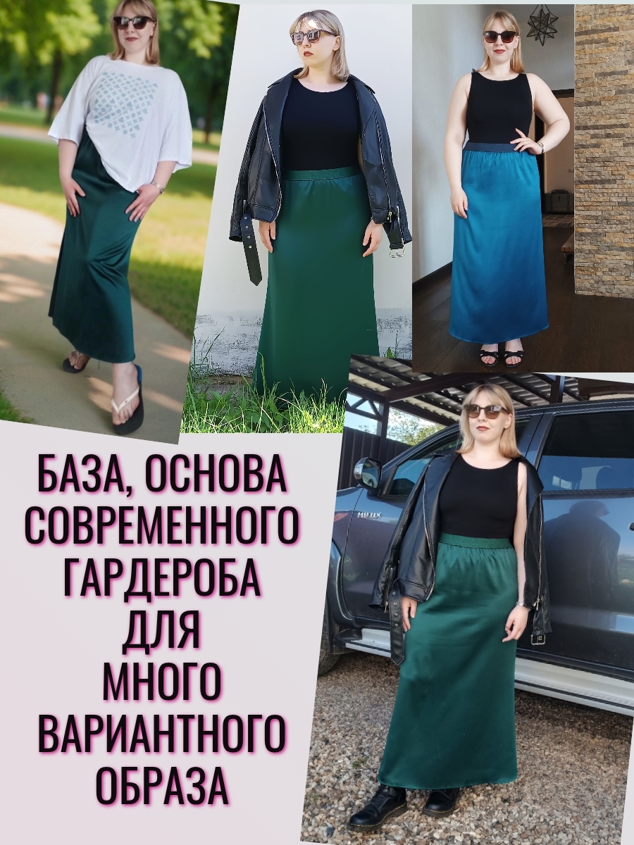 Юбка из плотного атласа в длине макси - один из главных трендов моды зимнего сезона 24-25. Благородный , матово-блестящий атлас (русский сатин) эффектно подчеркнет силуэт и комфортен в носке круглый год. Удобная резинка пояса (с люрексом, декоративная)и плотно обхватывает талию. Длина юбки 92 см, модель годе ( сверху суженная, снизу клеш). Если Вы хотите плотного облегания - берите размер в размер. Ориентируйтесь только на мерки обхвата бедер : 52размер-112см; 54р-116см; 56размер-120 см; 58-124см; 60-128 см; 62- 132см. Образы могут быть как вечерними, так и повседневными- шелковые юбки удачно сочетаются с трикотажными вещами.