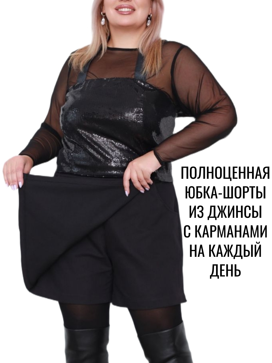 Юбка-шорты джинсовые большого размера от Царицын Дом – идеальный выбор для тех, кто ценит комфорт и стиль. Эта модель представлена в больших размерах, что делает её универсальной для офисного стиля, вечерних мероприятий и повседневного ношения. Ткань для юбки-шорт - джинсовая с эластаном, что дает комфорт при ношении и лучшее облегание.также хорошо держит форму.. Широкая резинка в поясе обеспечивает удобство и легкость в одевании и не придает дополнительного объема в зоне живота. Отсутствие декоративных элементов делает эту юбку-шорту универсальной для любых нарядов. Тип посадки – средний, что подходит для широк. Юбка-шорты имеет два вместительных кармана, дополнительно облегчающими силуэт. Длина шорт по боковому шву составляет 44 см, силуэт слегка расклешенный, свободный. После покупки желательно юбку-шорты повесить во влажном помещении или отпарить. Наша модель отлично подходит для повседневной носки. особенно в холодный период. Уход за ней прост - деликатная стирка, глажка с изнанки и сушка на плечиках.